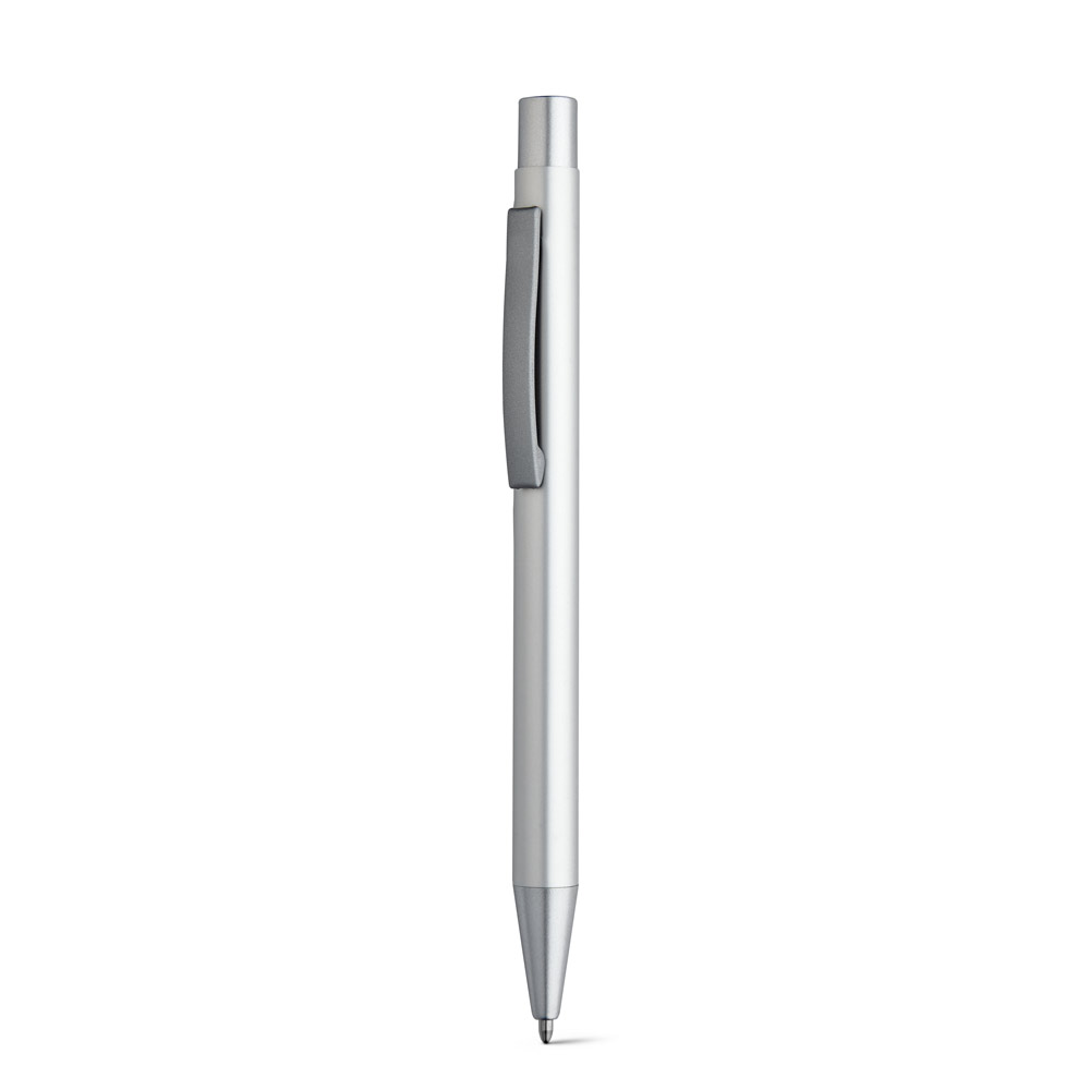 Esferográfica em alumínio com acabamento mate e escrita em preto