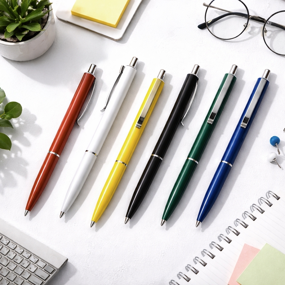 R$ 1,00Caneta plástica com clip e ponteira em metal. Possui acionamento por clique e carga esferográfica azul de 1.0mm. Largura : 1,2 cm Comprimento : 13,5 cm