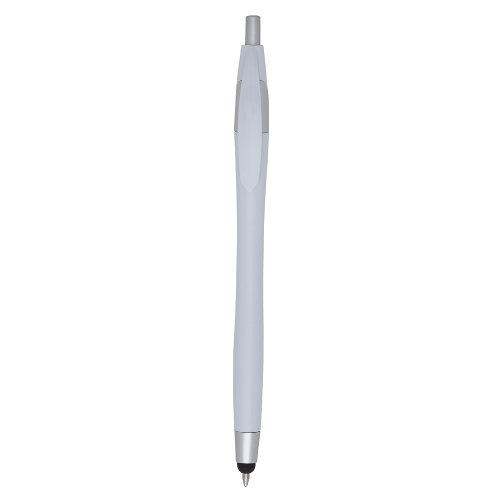 R$ 1,00Caneta plástica com ponteira touch screen, carga esferográfica azul 1.0 mm e acionamento por clique. Largura : 1,4 cm Comprimento : 14,1 cm