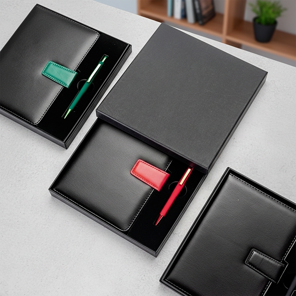 R$ 1,00Kit executivo com três peças, composto por uma caderneta, uma caneta e uma lapiseira. A caderneta possui capa dura em papelão reforçado, fechamento em elástico, cerca […]