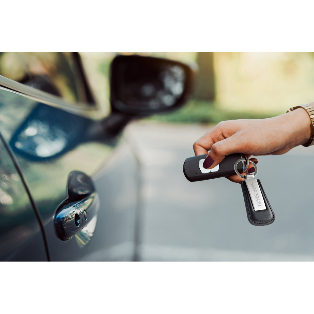 Chaveiro em c. sintético e metal. Fornecido em caixa presente de papel kraft reciclado. 38 x 76 x 9 mm.