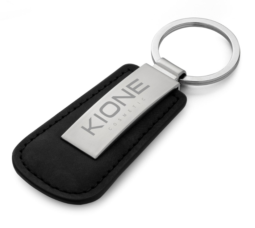 Chaveiro em metal brilhoso + PU, acompanha caixa com berço aveludado.